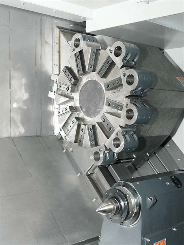 整體式45°傾斜L形床身,具有高模態(tài)和高抗震性,實現(xiàn)了車床的高剛。