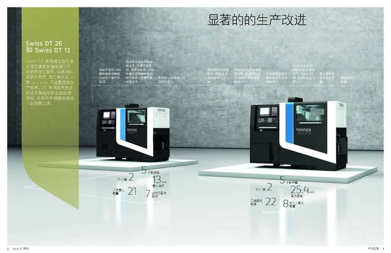 Swiss DT 系列瑞士型車床專業(yè)設(shè)計(jì)滿足典型長 短車削工件的各種要求。該系列機(jī)床簡單易 用,加工直徑達(dá) 13 和 25.4 mm,可顯著提高生 產(chǎn)效率。Swiss DT 系列采用先進(jìn)的技術(shù)和高效的五軸運(yùn)動(dòng)結(jié)構(gòu),是所有車削和銑削加工的理想之選。
